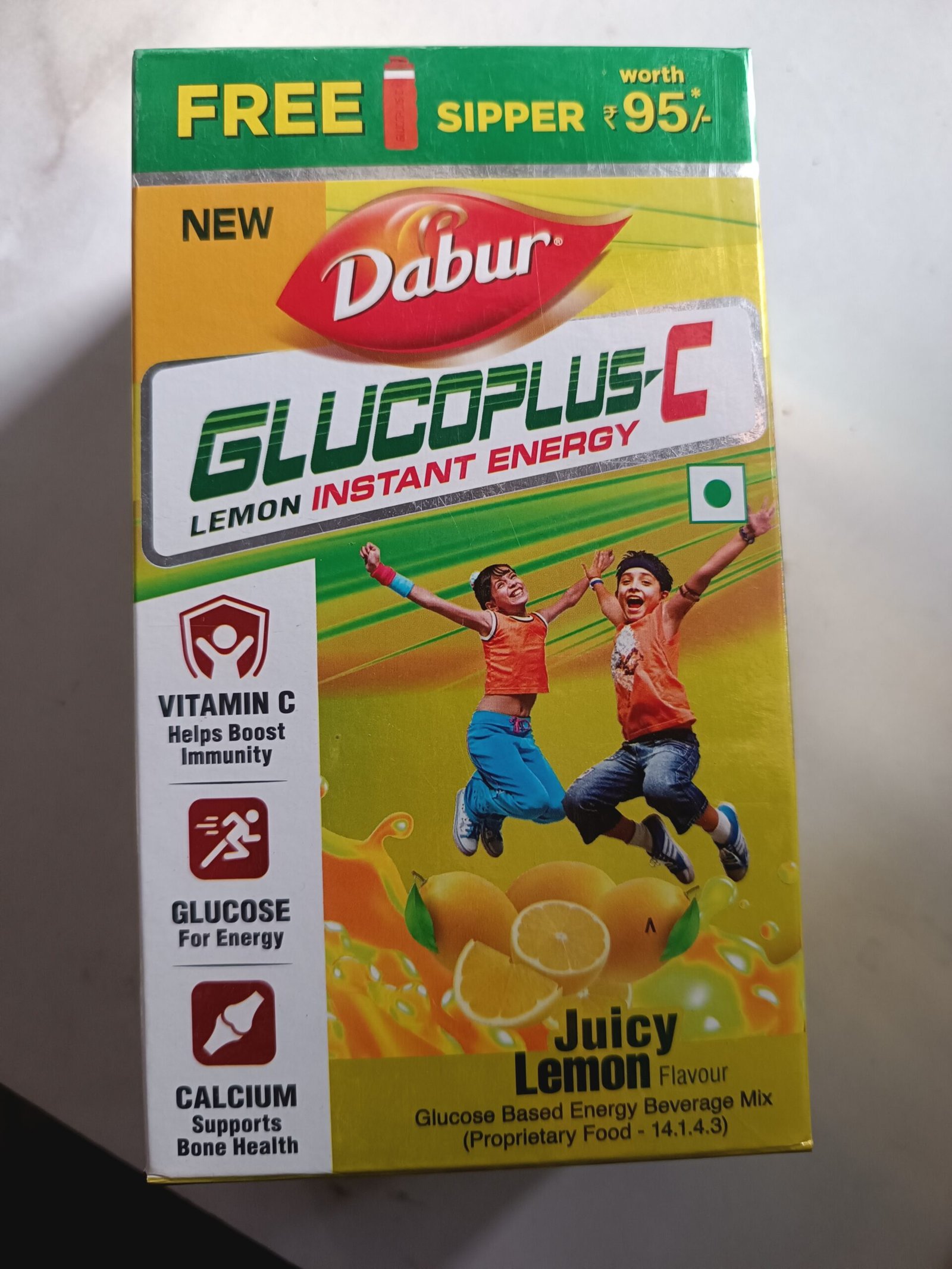 Dabur Glucoplus-C Lemon is a refreshing glucose powder beverage that provides instant energy, enriched with Vitamin C and calcium to boost immunity and support overall well-being.