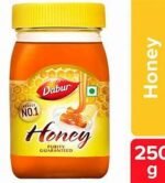 Dabur Honey 250g is 100% pure, unadulterated, and sourced entirely from Indian beekeepers, offering natural health benefits including immunity support, energy boost, and digestive health.