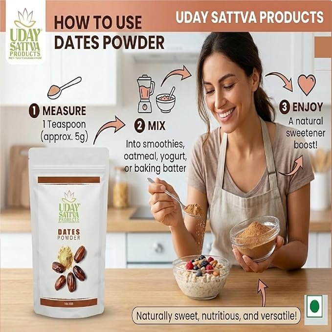 Dates Powder, 100% Natural Dried Khajur Powder, Vegan & Gluten-Free, Natural Sweetener, 100g | Uday sattva