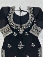 Enhance your ethnic style with this elegant 5000 Series Faux Georgette Plazo Suit Set. Designed with intricate thread embroidery and sequins work on both front and back, this outfit offers a rich and graceful look.
