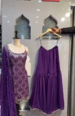 The flowy sharara enhances your silhouette, while the beautifully detailed dupatta completes the festive look. Crafted for comfort and style, this outfit is ideal for weddings, festive occasions, and special celebrations.