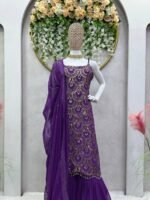This designer set is made for women who love rich ethnic fashion with modern detailing. The lightweight faux georgette fabric ensures comfort, while the intricate embroidery and sequins add a luxurious touch. A perfect choice to stand out at any event with grace and confidence.