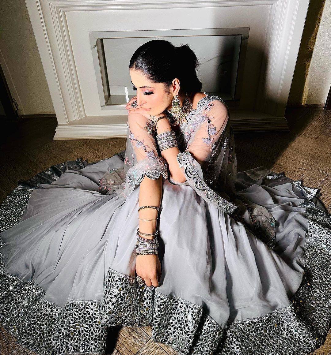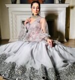 The butterfly net dupatta with heavy sequins work and four-side cutwork lace border adds a graceful finishing touch, making this outfit perfect for weddings, festive occasions, and special celebrations.