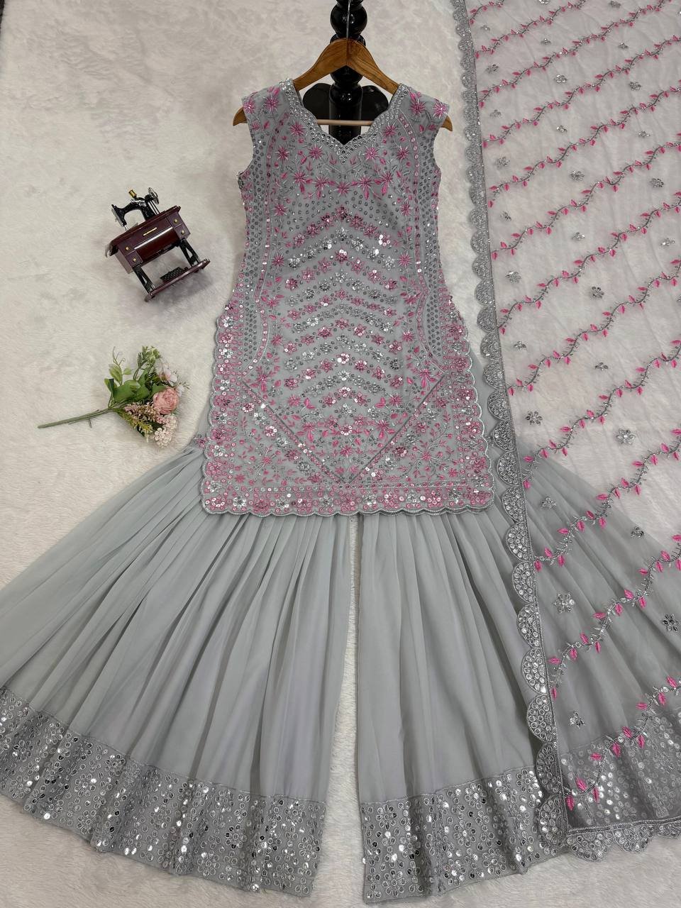 Designer Faux Georgette Sharara Suit with 9mm Sequins & Butterfly Net Dupatta – 5000 Series | BRAD LEEZO