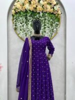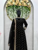 This elegant faux georgette suit set is designed with detailed thread and sequence work, giving it a rich festive appearance. The soft inner lining ensures comfort for long wear, while the coordinated dupatta with four-side lace border adds a premium finishing touch.