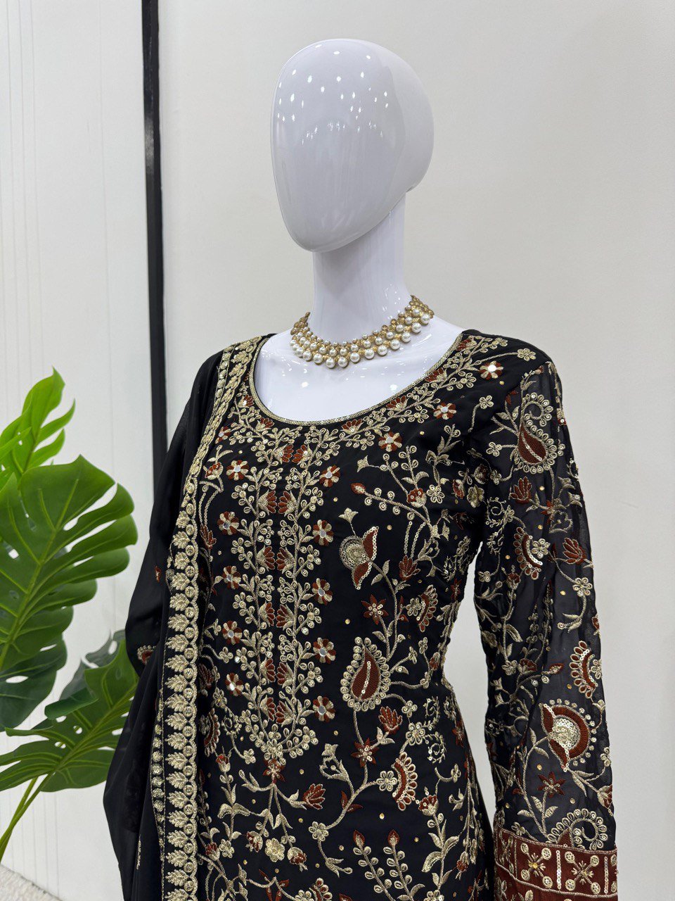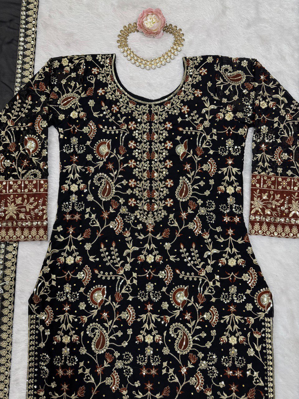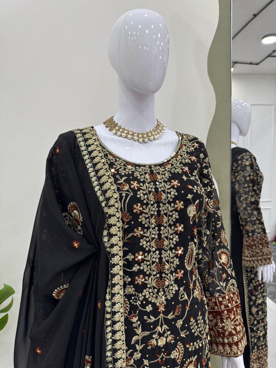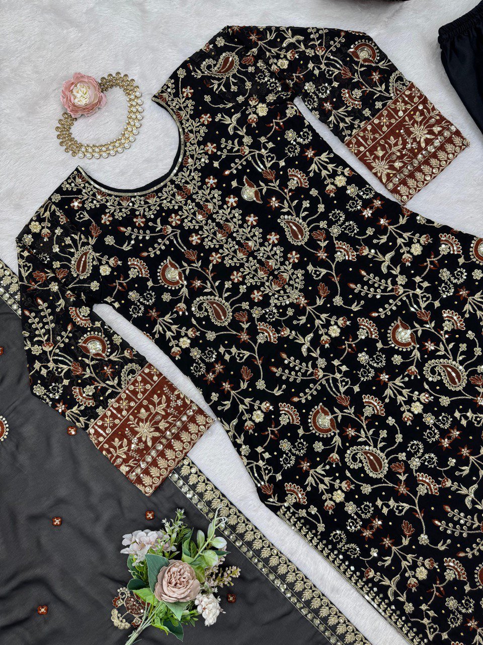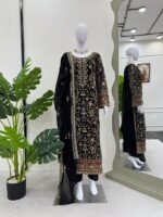 Crafted for modern women who love detailed and premium ethnic wear, this suit set combines comfort with rich styling. The lightweight fabric, elegant embellishments, and refined finishing make it an ideal choice for special occasions and celebrations.