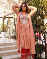 The matching pant with mirror and latkan work adds a stylish touch, while the dupatta with fancy latkan completes the graceful appearance. Perfect for weddings, festivals, and special celebrations.