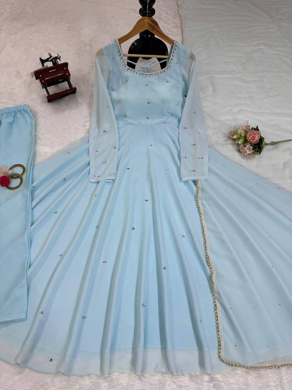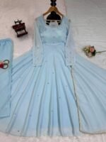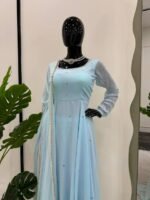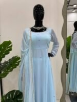 This designer suit set is crafted for women who love premium ethnic wear with detailed craftsmanship. The lightweight fabric, mirror work, and elegant dupatta make it a perfect choice for standout festive styling.