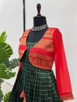 The matching koti enhances the overall style with a layered designer look, making this outfit perfect for weddings, festive occasions, and special celebrations.