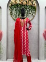 This suit set is designed for women who love trendy yet comfortable ethnic wear. The combination of digital prints and subtle embellishments makes it a versatile choice for everyday elegance and festive styling. A must-have addition to your wardrobe.