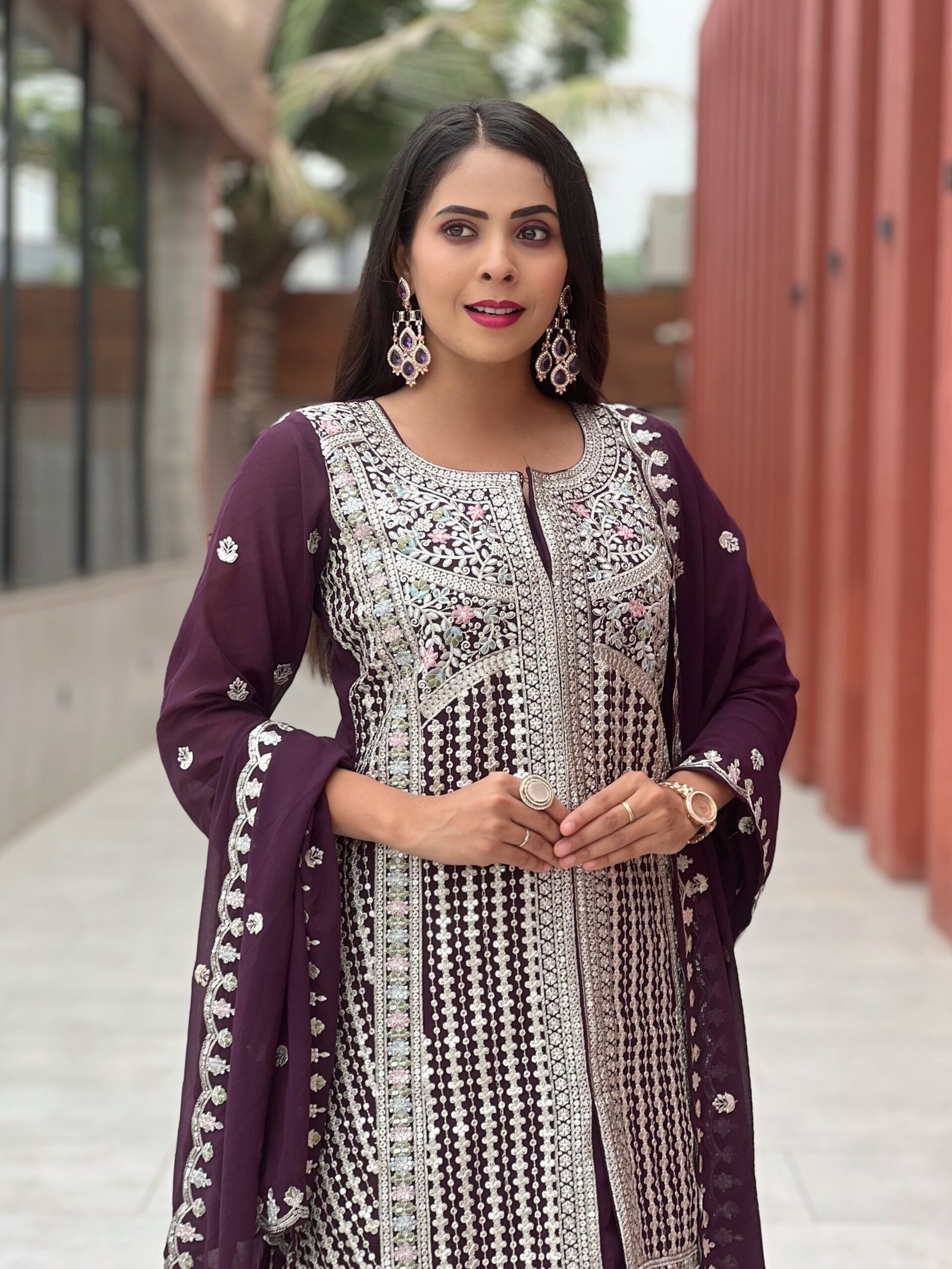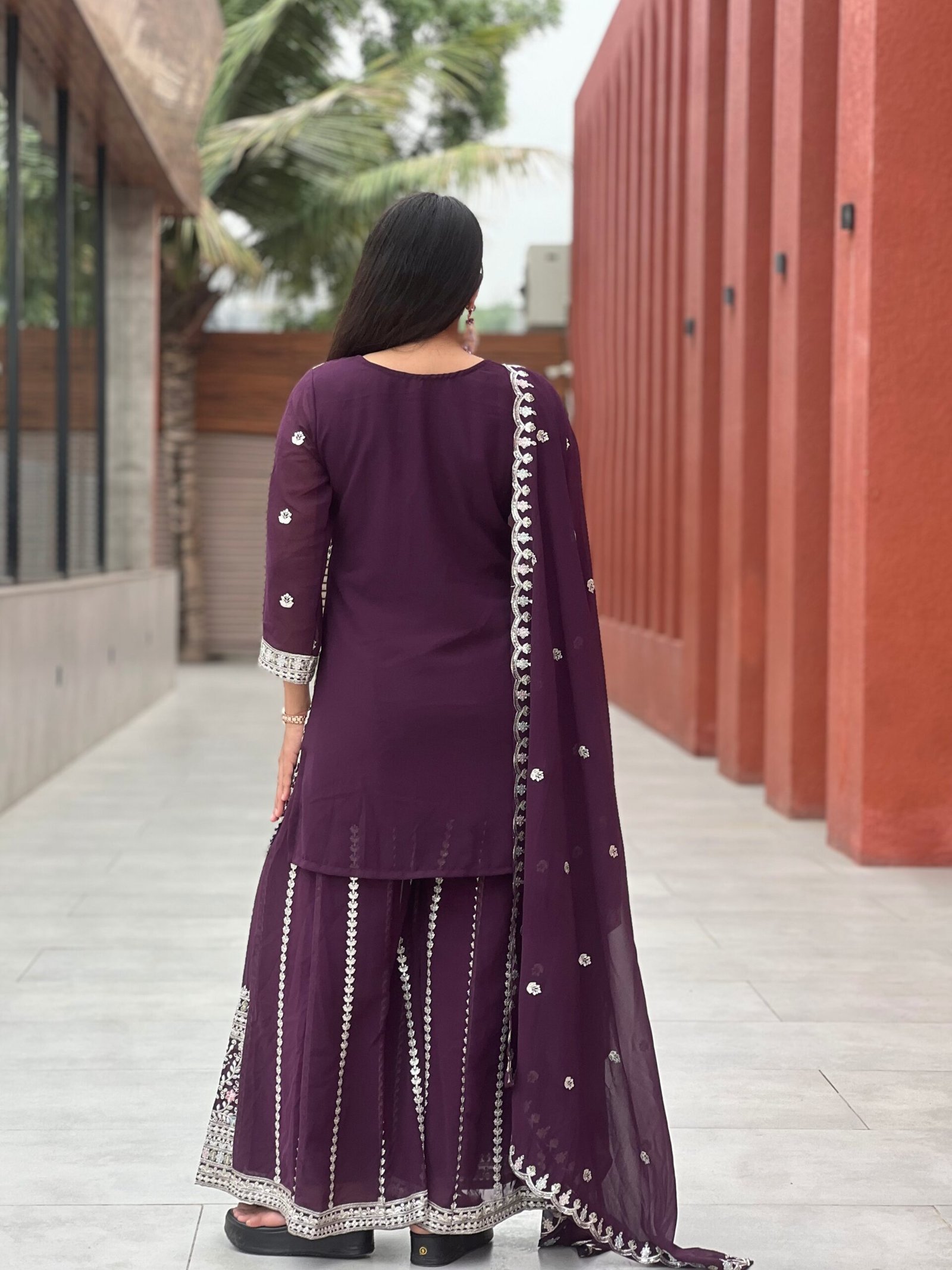 Be the first to review “Designer Purple Embroidered Kurta with Palazzo & Dupatta Set for Women | Party Wear Ethnic Suit” Cancel reply