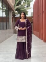 Be the first to review “Designer Purple Embroidered Kurta with Sharara & Dupatta Set for Women | Party Wear Ethnic Suit” Cancel reply