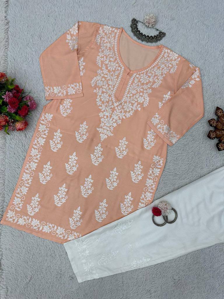 Upgrade your everyday ethnic style with this elegant 5000 Series Rayon Co-Ord Set. Designed with fine chain stitch detailing, this outfit offers a perfect blend of comfort and simple elegance.