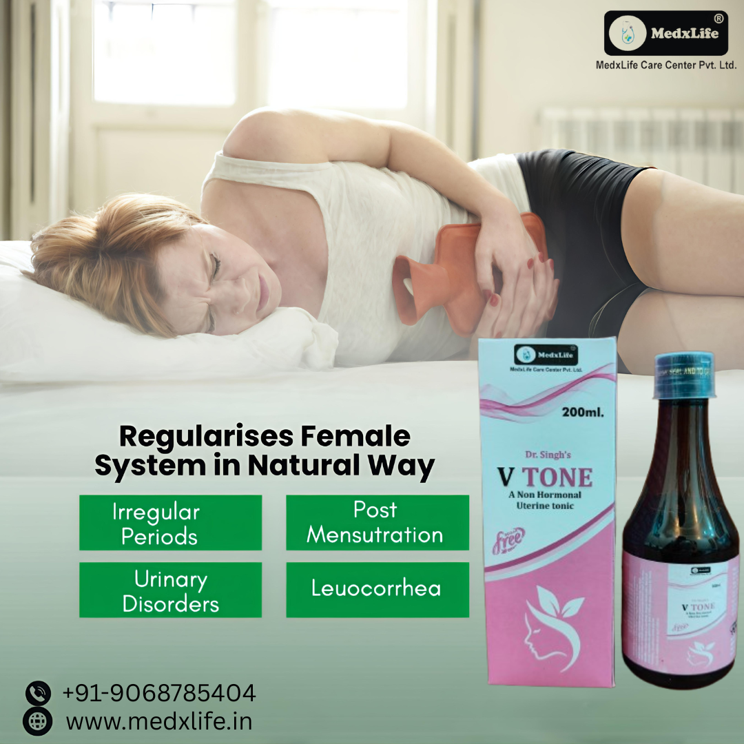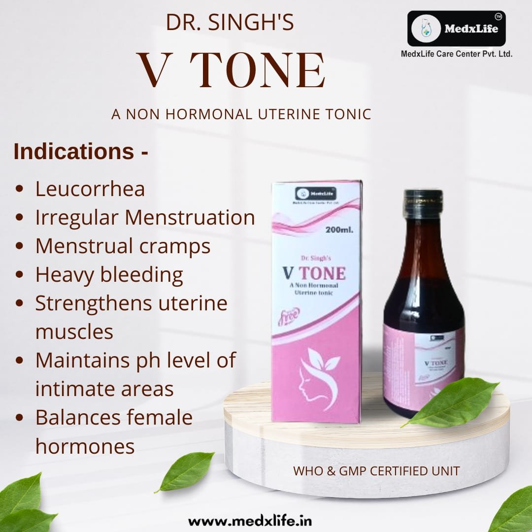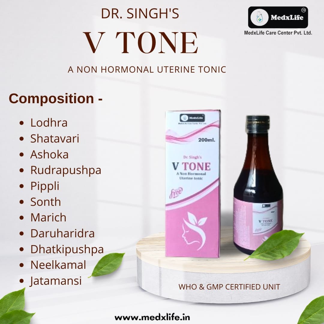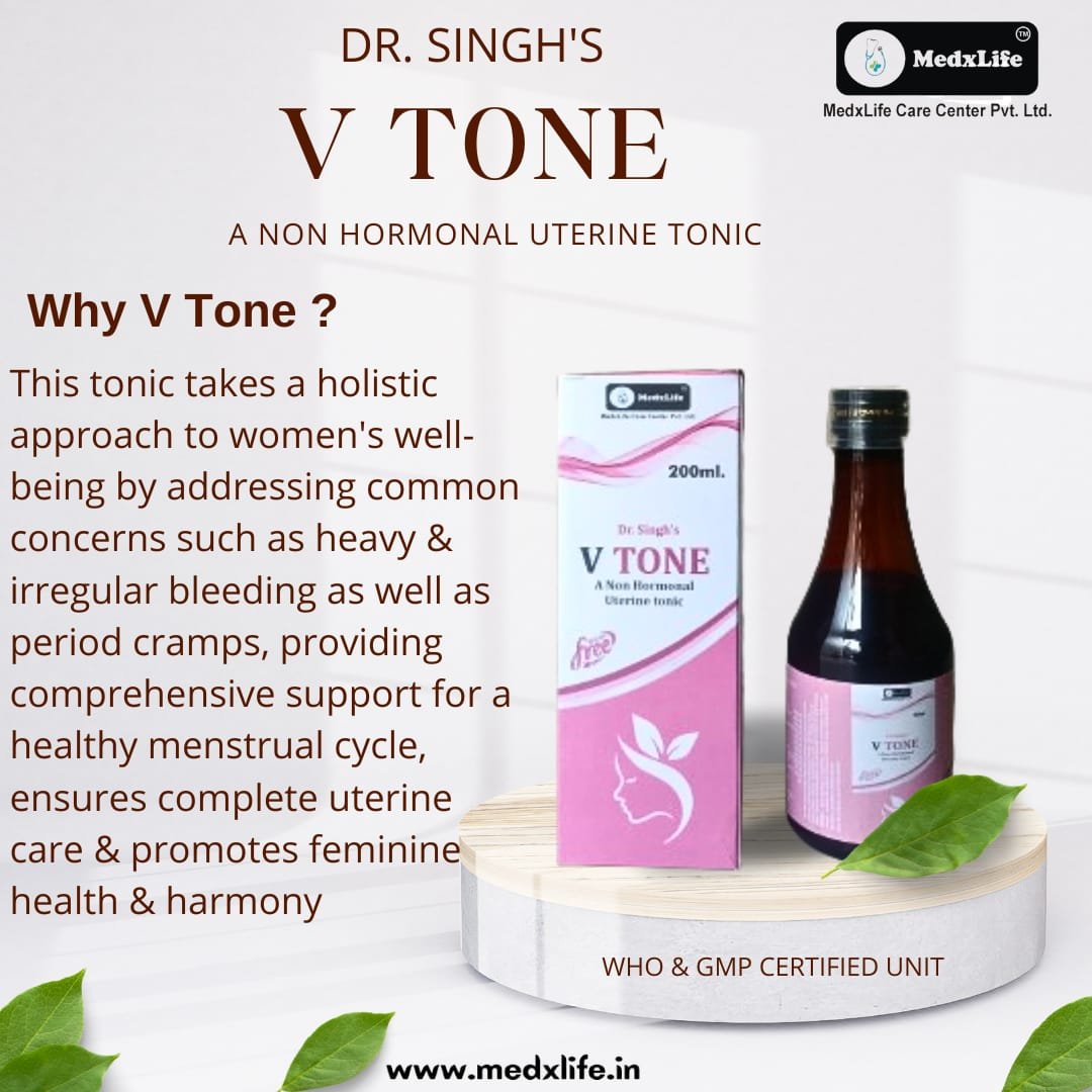 Dr. Singh’s V Tone is a comprehensive herbal formulation crafted to support and enhance female reproductive health and hormonal balance. Rooted in Ayurvedic tradition, V Tone is designed to naturally tone the uterus, regulate menstrual cycles, and alleviate symptoms associated with hormonal imbalances such as irregular periods, fatigue, mood swings, and menstrual discomfort.
