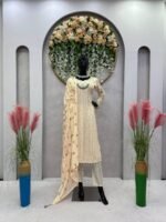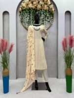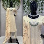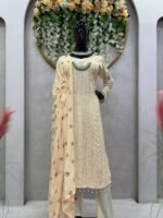 Celebrate in style with this elegant Eid Special 5000 Series Faux Georgette Suit Set. Designed with intricate thread embroidery, premium 9mm sequins, fancy lace borders, and beautiful moti work, this outfit brings a rich and festive appeal.