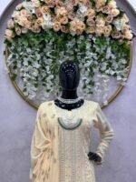 This designer suit set is crafted for women who love luxurious ethnic wear with detailed craftsmanship. The combination of sequins, moti work, and lace detailing gives it a premium festive look, making it a perfect choice for special celebrations.