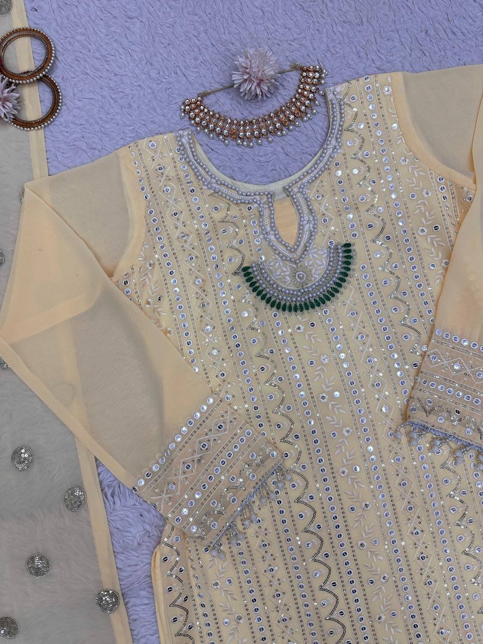 Eid Special Faux Georgette Suit Set with 9mm Sequins & Moti Work – 5000 Series | BRAD LEEZO