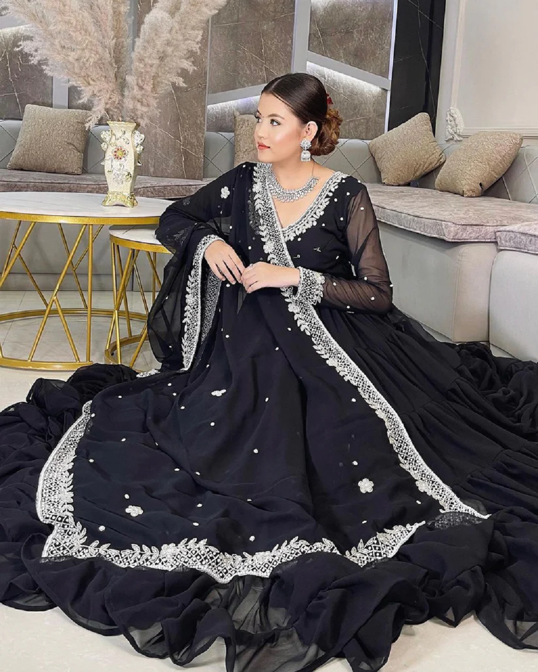 Be the first to review “Elegant Black Anarkali Suit with Silver Embroidered Dupatta” Cancel reply