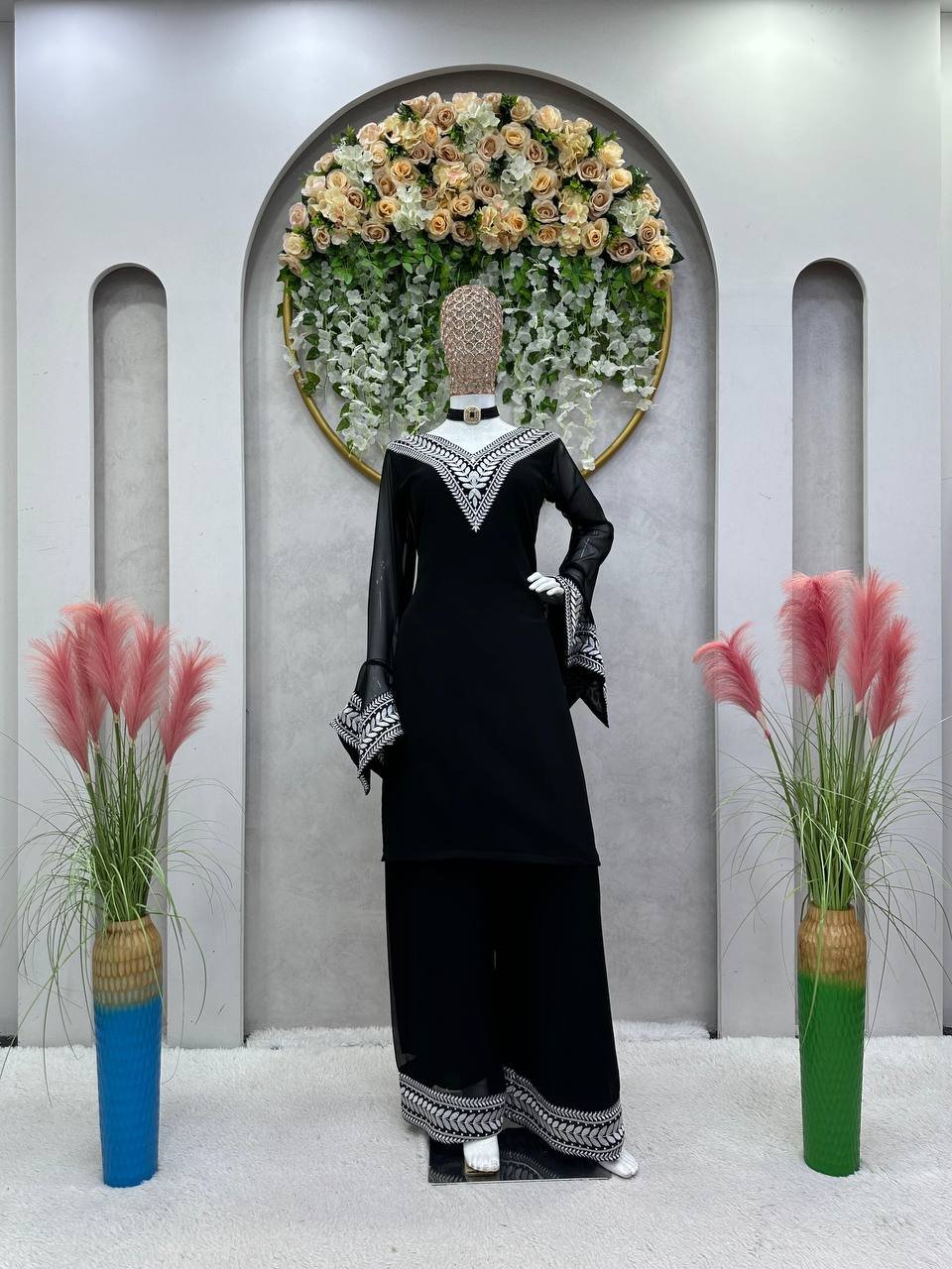 Elegant Faux Georgette Plazo Suit Set with Lace Dupatta – 5000 Series | BRAD LEEZO