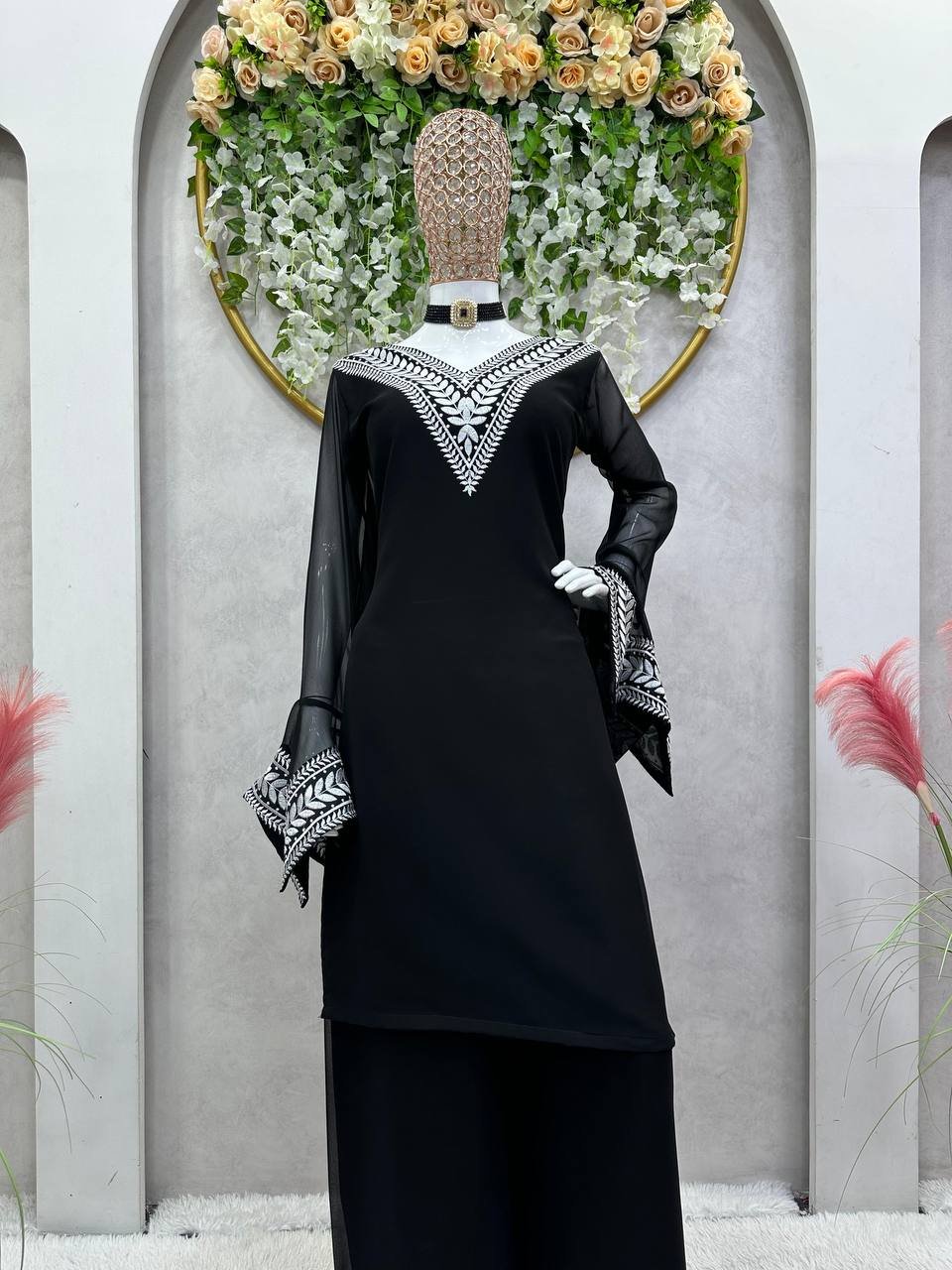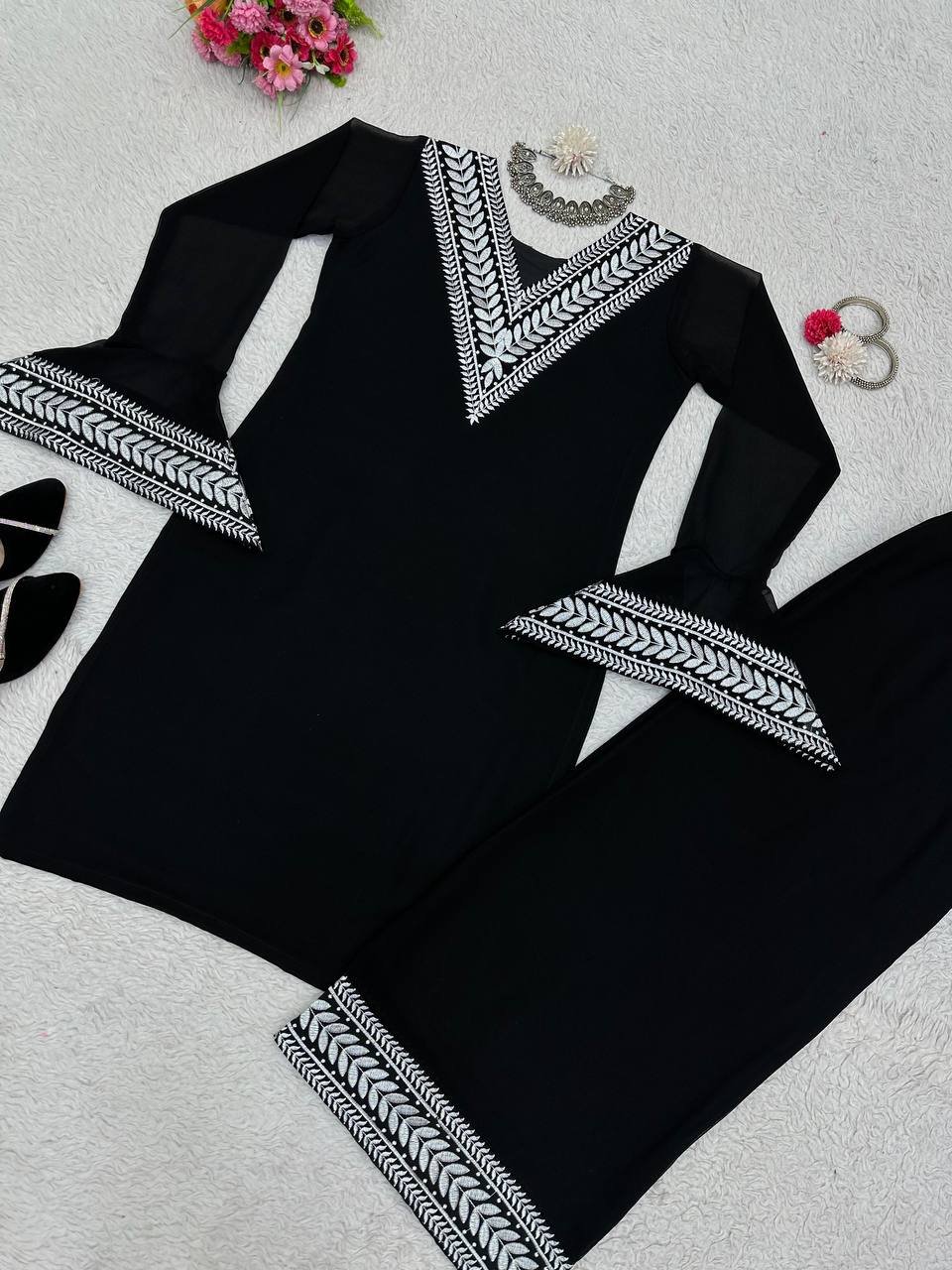 Be the first to review “Elegant Faux Georgette Plazo Suit Set with Lace Dupatta – 5000 Series | BRAD LEEZO” Cancel reply
