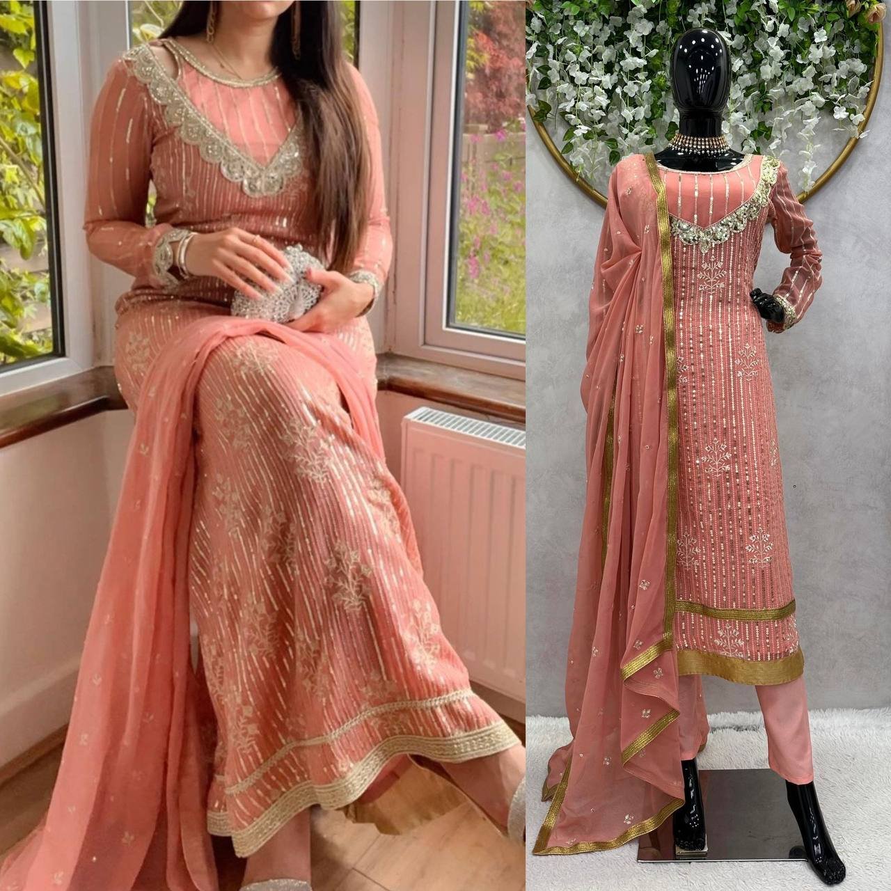 Elegant Faux Georgette Suit Set with Sequins & Lace Dupatta – 5000 SeriesElegant Faux Georgette Suit Set with Sequins & Lace Dupatta – 5000 Series | BRAD LEEZO