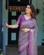Be the first to review “Elegant Purple Cotton Linen Saree with Geometric Motif and Blouse | Crown Fashion” Cancel reply