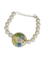Embroidered Parsi Gara Cream Blooming Flower Pearl Bracelet | HOUSE OF HERITAGE