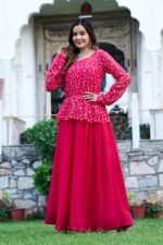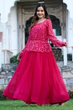 Step into elegance with this stunning rani pink embroidered Anarkali gown, designed to make a bold and graceful statement. The upper bodice features intricate thread embroidery, adding richness and charm, while the flared skirt enhances the overall silhouette with a royal touch. Crafted from lightweight and flowy fabric, this gown offers both comfort and style, making it perfect for weddings, festive celebrations, and special occasions.