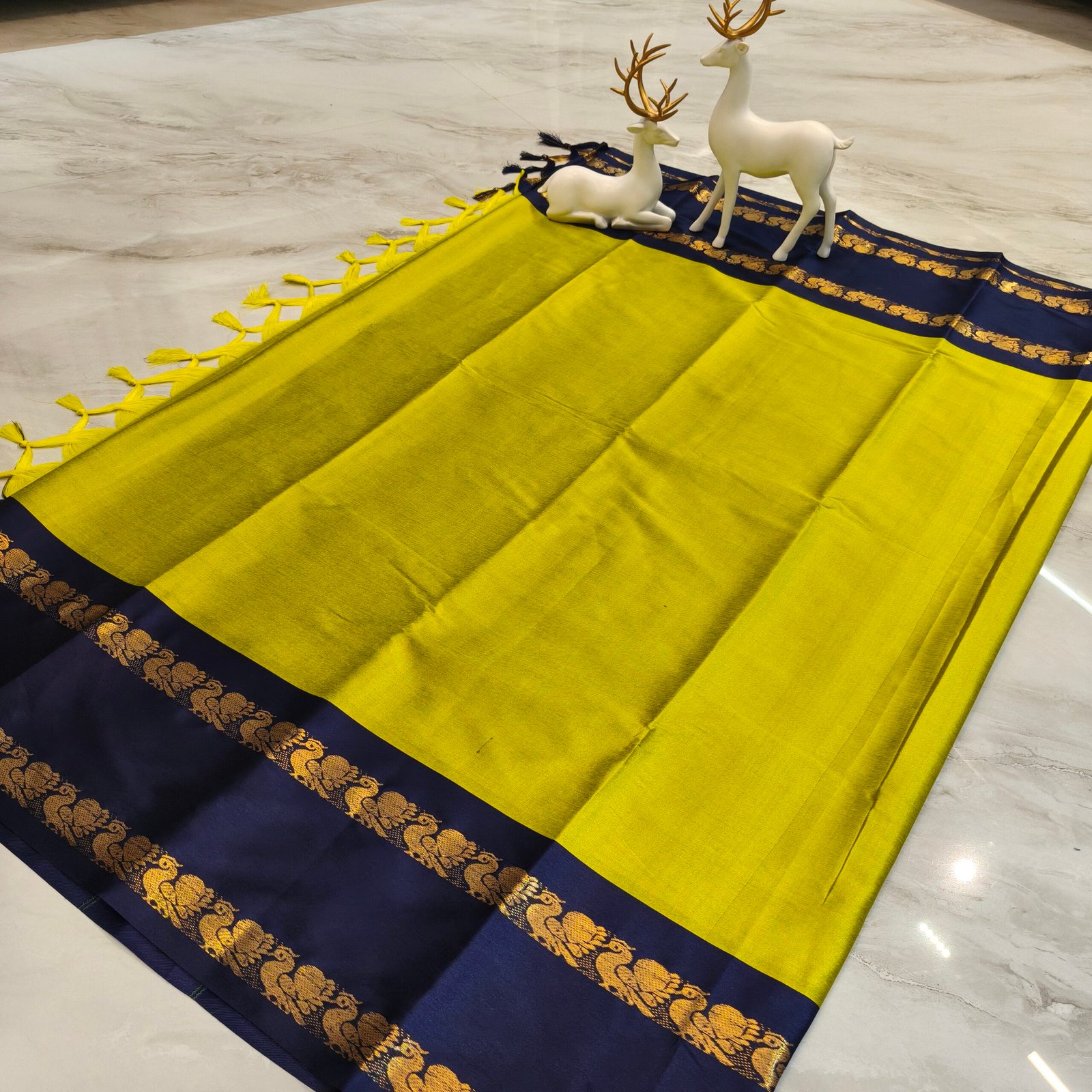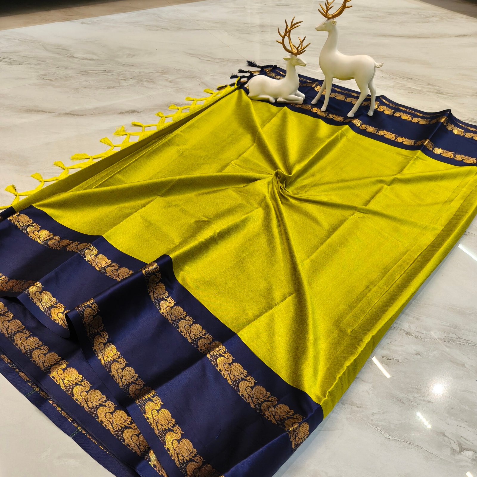 - Traditional golden elephant zari design