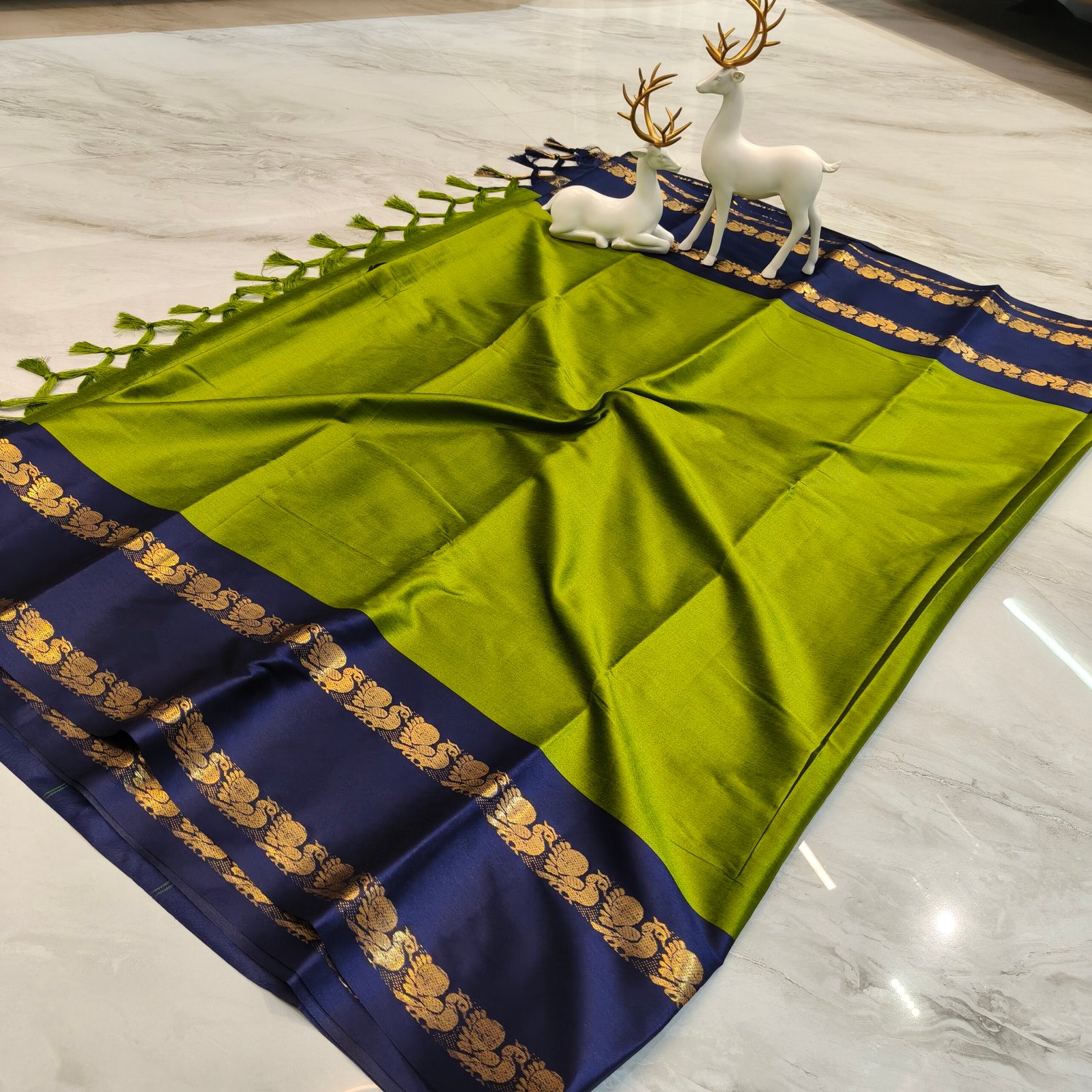 | Color | Mehendi Green with Navy Blue Border |