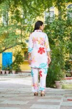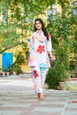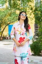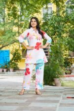 Step into effortless style with this elegant floral printed women’s co-ord set, designed for both comfort and modern fashion. The set features a beautifully printed tunic-style top paired with matching straight-fit pants. Crafted from soft and breathable cotton fabric, it ensures all-day comfort while keeping your look fresh and stylish. The vibrant floral patterns add a lively touch, making it perfect for casual outings, travel, daily wear, or relaxed gatherings.