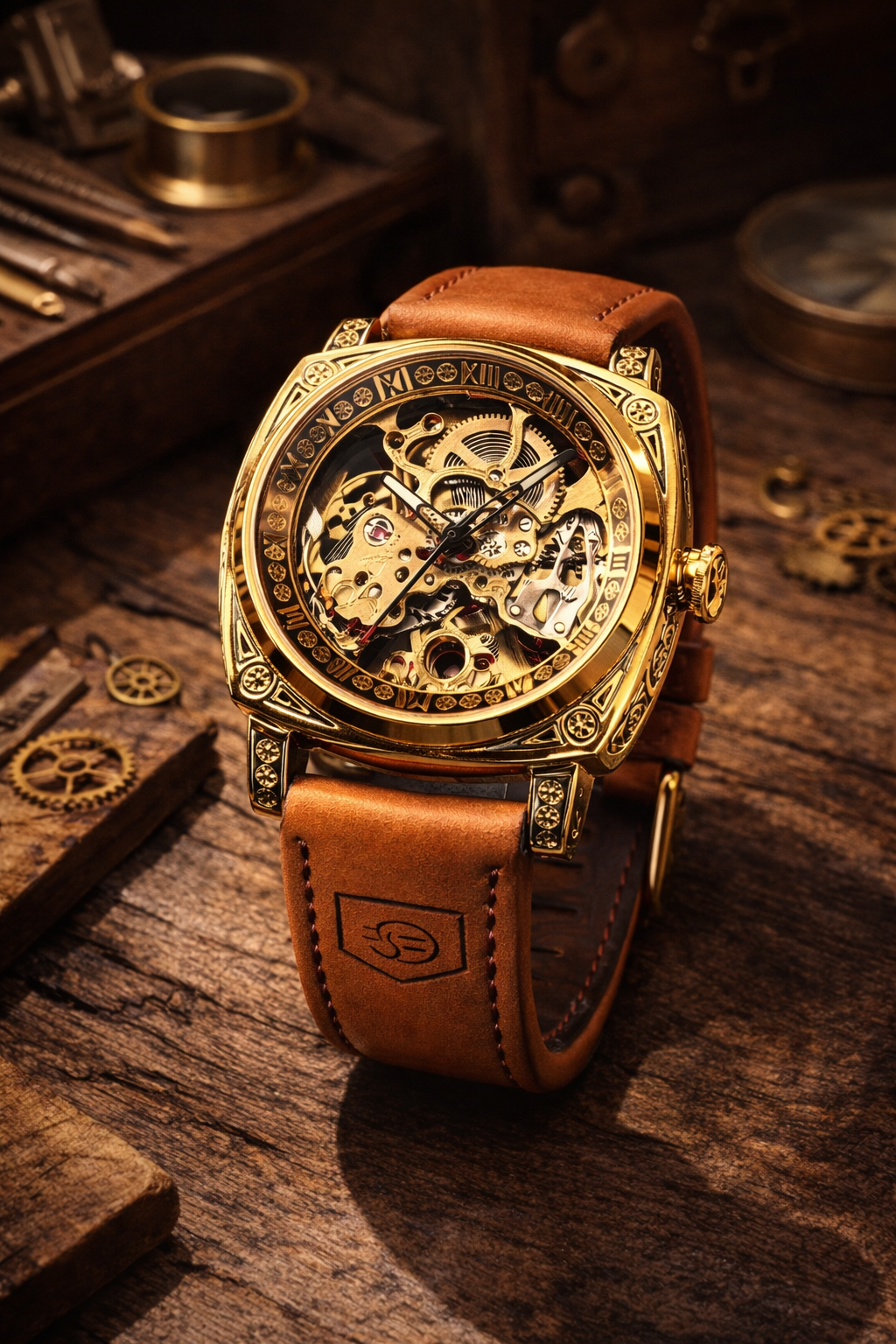 Unlike quartz watches, this mechanical timepiece allows you to see the heart of the watch in action. The exposed working gears on the dial and the transparent case back showcase the intricate movement, where each component works in perfect harmony. This is not just a watch—it is a living mechanical system, constantly in motion.