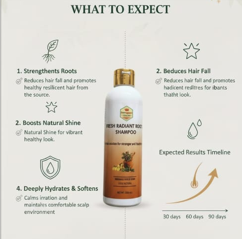 Revive your hair from root to tip with Fresh Radiant Roots Shampoo — a unique blend of traditional Ayurvedic herbs and modern hair-care actives. Packed with Hibiscus, Amla, Brahmi, Shikakai, Neem, Rosemary, Aloe Vera, and Curry Leaves, this shampoo works gently yet effectively to cleanse the scalp, control dandruff, smoothen frizz, and promote healthier hair growth.