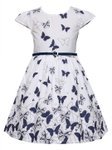 Funshine Girls Cotton Floral Print Navy Dress with Belts | Funshine
