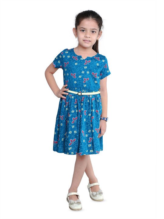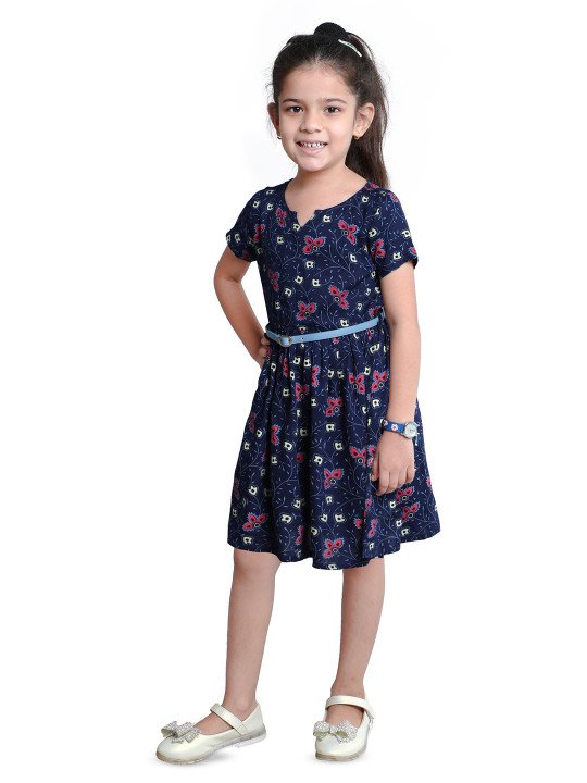 For toddlers girls size 2-3 Yrs This charming Fit & Flair dress is crafted from breathable rayon fabric, ensuring comfort for sensitive skin. The flared design adds a cute touch thats perfect for carefree adventures, making it ideal for casual outings and active days.