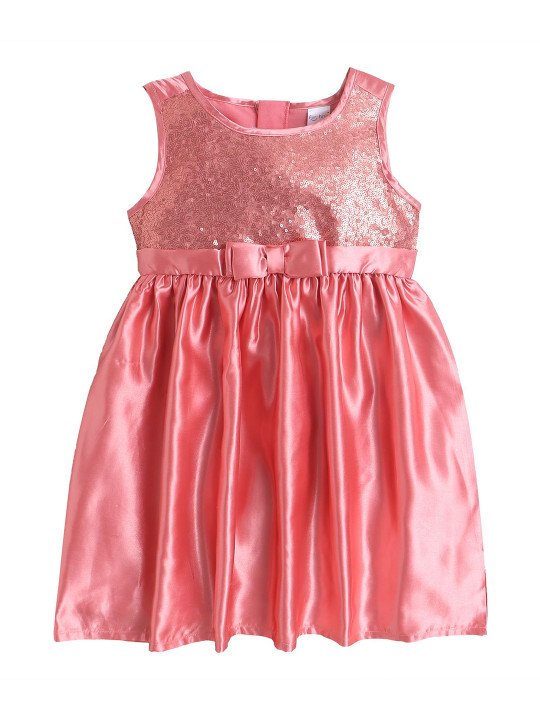 Girls Sequined Embellished Bows Detail Satin Fit & Flare Dress | Funshine