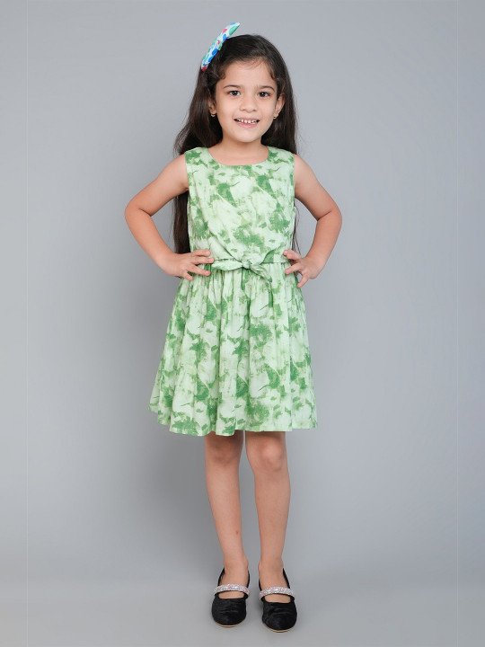 - Green tie and dye dyed fit & flare dress