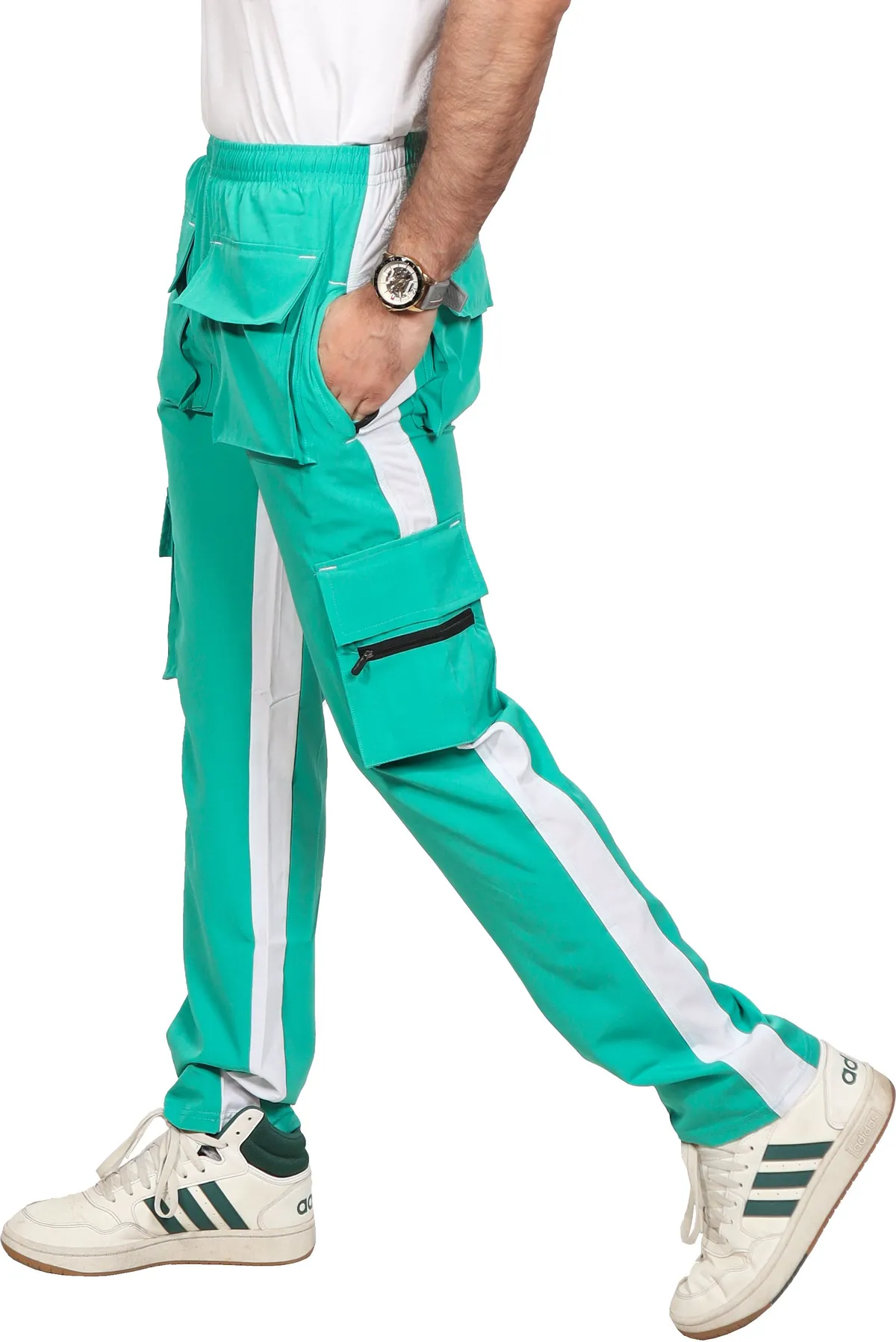 Light Green Lycra Blend Polyester Elastic Self Design Track Pant For Men | Adaaistic