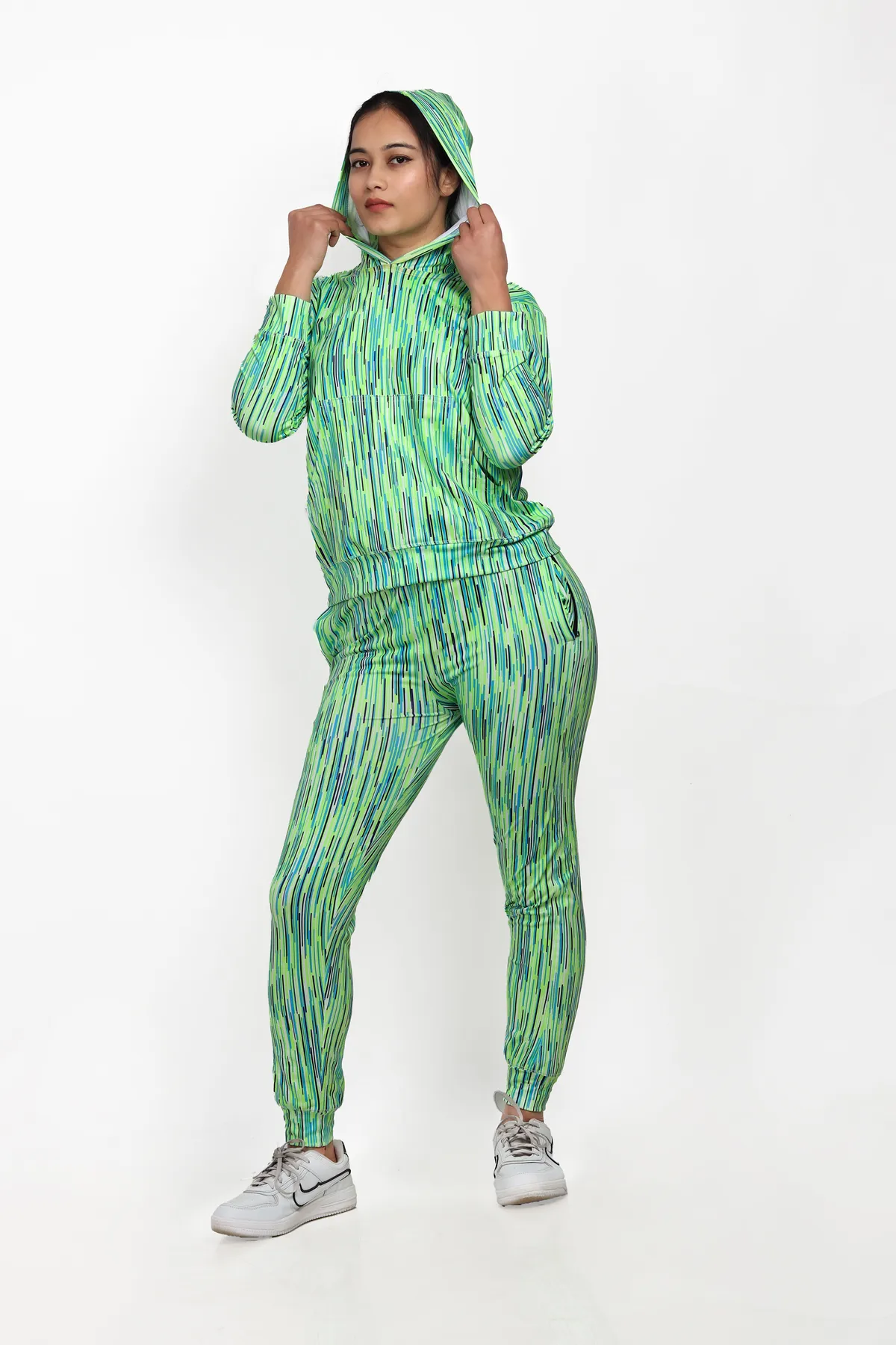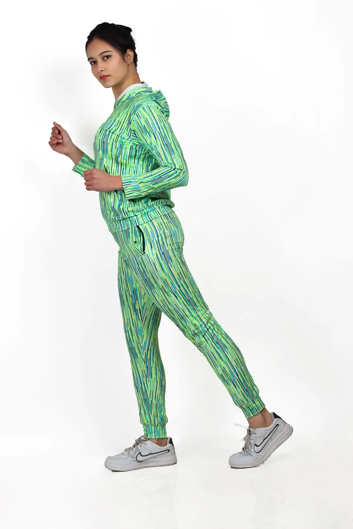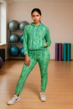 Be the first to review “Green Lycra Blend Polyester No Printed Track Suit For Women | Adaaistic” Cancel reply