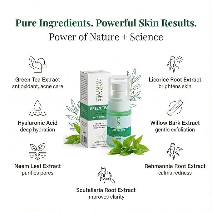 Green Tea Face Serum with Hyaluronic Acid Antioxidant Hydrating Oil Control Formula Pack of 2 × 30 ml | Promee
