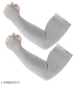 Grey UV Protection Arm Sleeves/Hand Socks with Fingers – Sun Protection Gloves for Men and Women (With Thumb Cutting) | EmmEmm