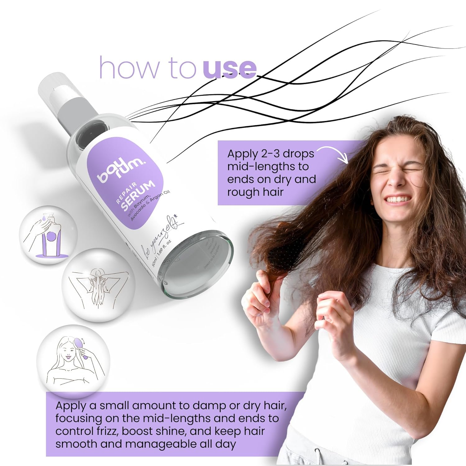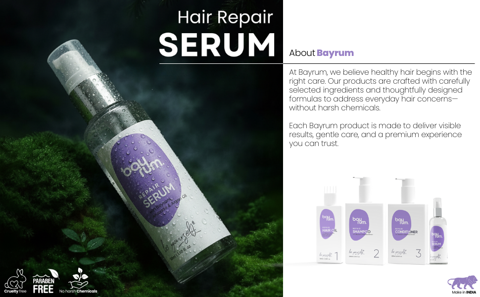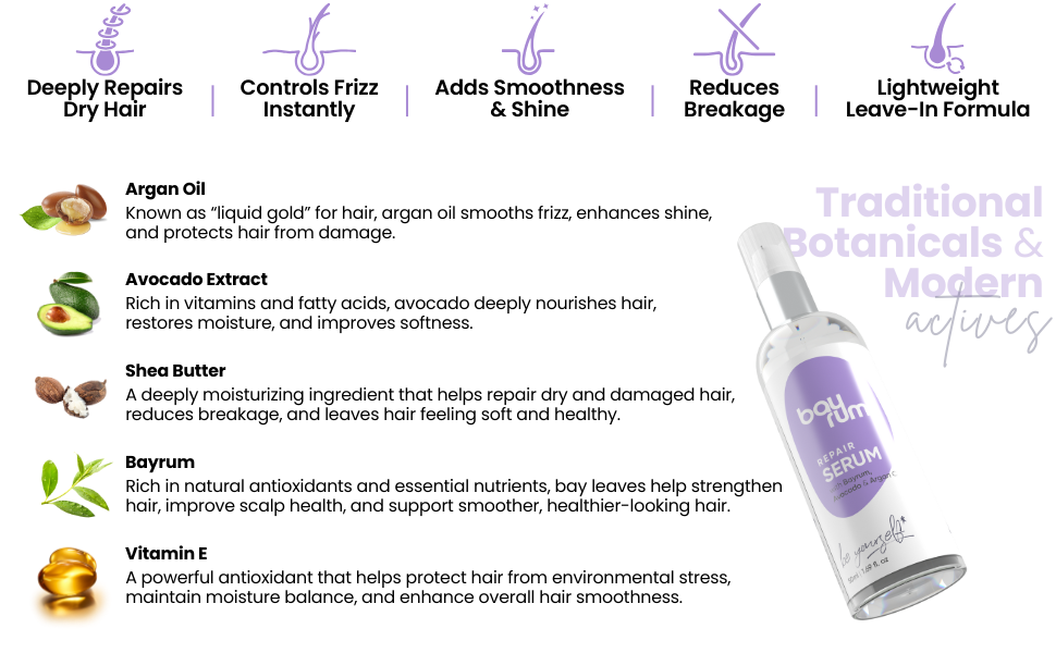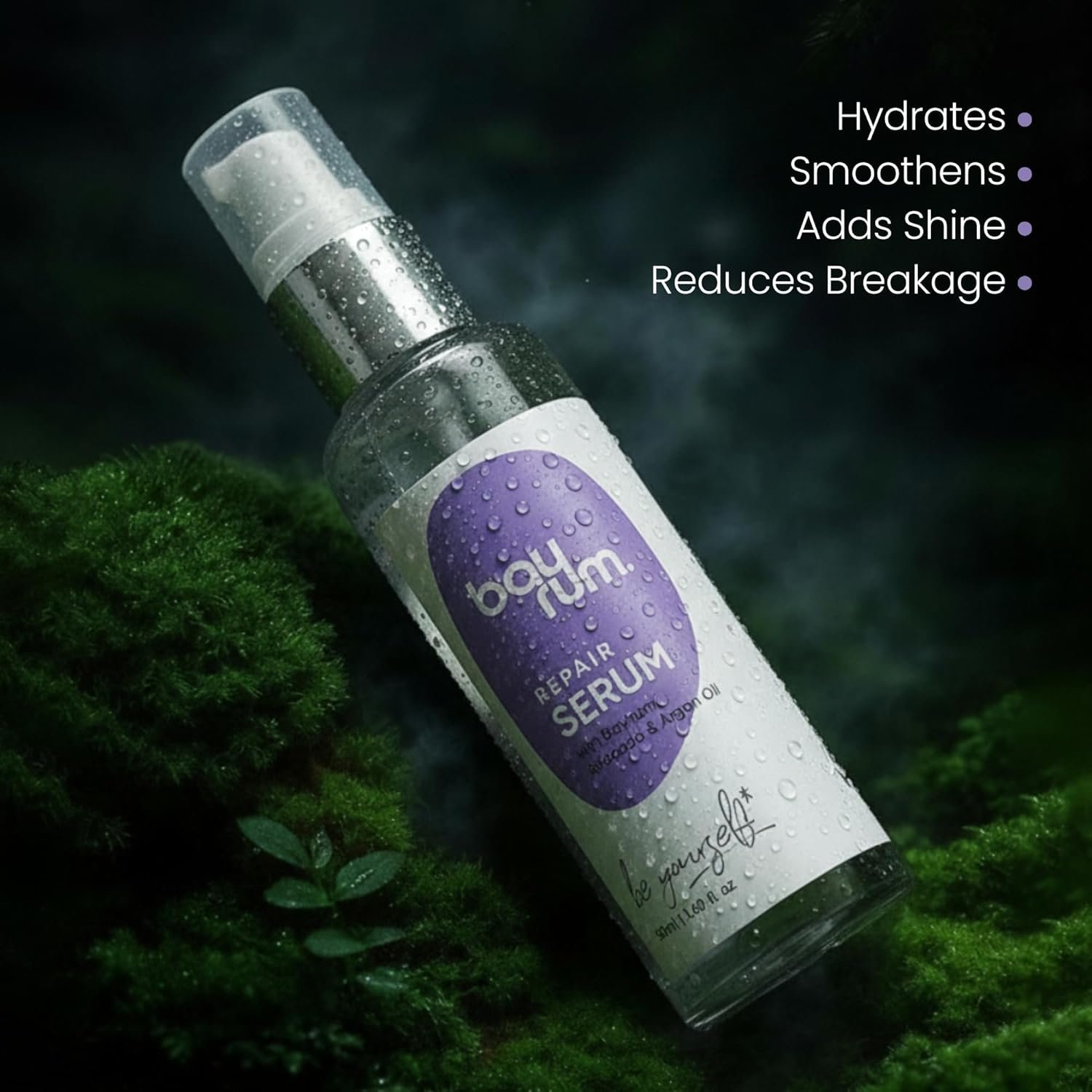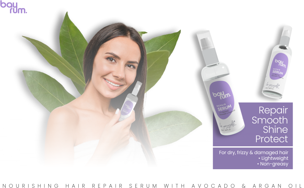 Hair Repair Serum for Dry & Frizzy Hair | Avocado, Argan Oil, Shea butter | Reduces Breakage, Adds Smoothness & Shine | Lightweight Leave-In Hair Serum | 50 ml | Bayrum