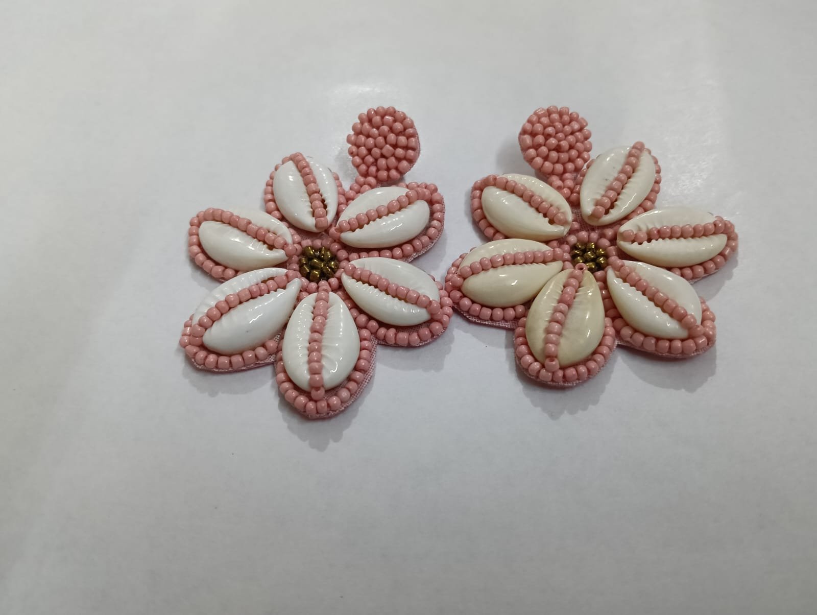 Be the first to review “Handcrafted Cowrie Shell Flower Earrings – Pink & White Beaded Boho Statement Jewelry | Deepti Handicraft”