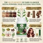 Paris Glamour Henna Powder is a premium quality 100% natural henna (heena) powder made from finely ground henna leaves. Henna has been traditionally used for natural hair coloring and conditioning, helping to improve the overall health and appearance of hair.