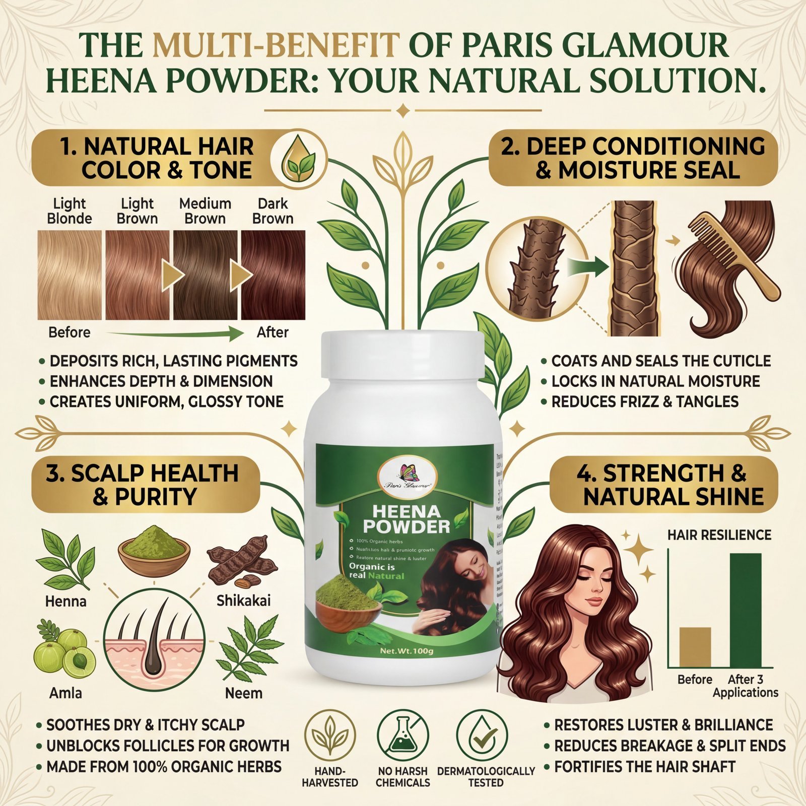 Henna Powder 100gm |Herbal Hair Color & Conditioner for Strong, Thick & Shiny Hair | Pari Glamour