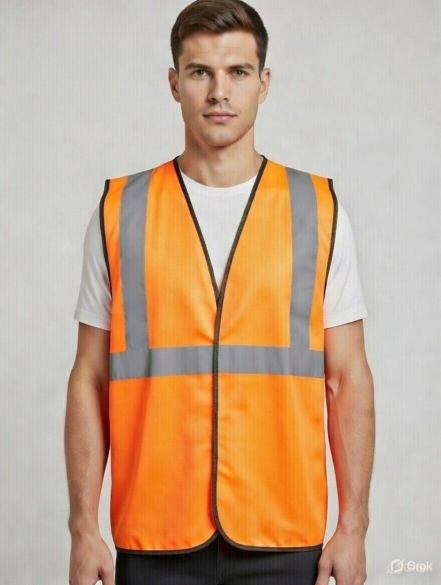 Enhance workplace safety with this high-visibility reflective safety jacket designed for maximum visibility and comfort. Made from lightweight yet durable fluorescent orange fabric, this sleeveless safety vest features wide silver reflective strips on the front and back to ensure 360° visibility in low-light and high-risk environments.