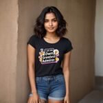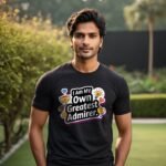 Show your confidence and positive mindset with this stylish black printed T-shirt featuring the inspiring message “I Am My Own Greatest Admirer.” Designed with colorful graphics and modern typography, this T-shirt adds a vibrant and motivational touch to your casual wardrobe. The classic black background enhances the bright design, making it stand out while staying versatile for everyday styling. Crafted from soft and breathable fabric, it ensures comfortable wear throughout the day, perfect for casual outings, daily wear, or relaxed weekends.
