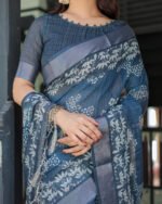 • Cotton linen is celebrated for its breathability, durability, and natural texture, making it an ideal fabric for sarees that are comfortable to wear throughout the day. Its blend ensures that you enjoy the softness of cotton and the sturdy feel of linen, providing a perfect balance for any season.