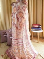 Be the first to review “Ivory Linen Saree with Geometric Tribal Prints & Tassel Accents | Crown Fashion” Cancel reply