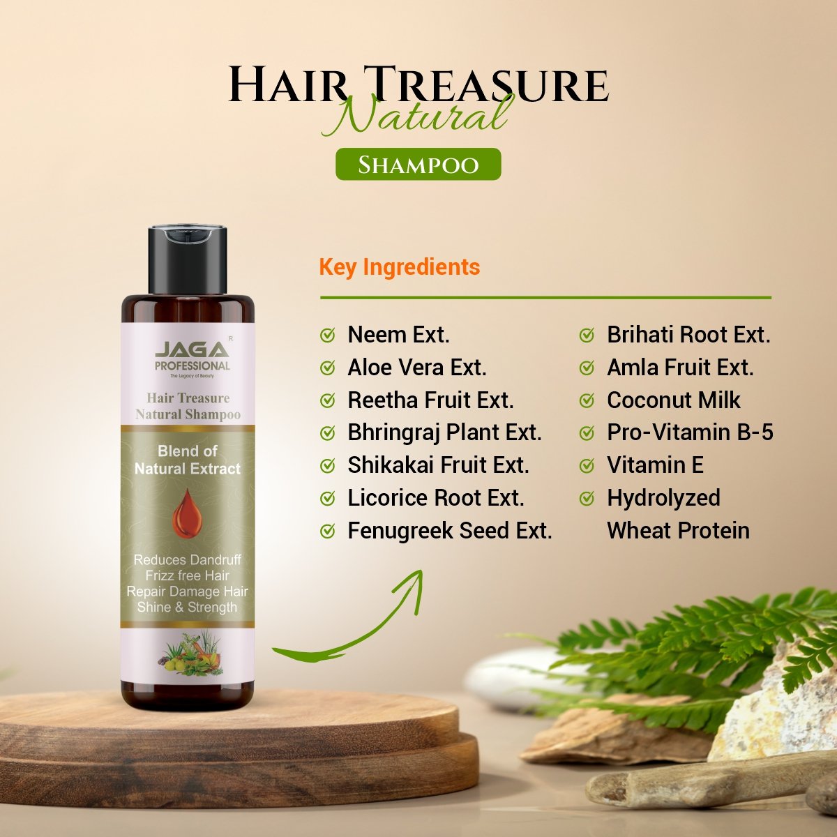 Revitalize your hair with Hair Growth Booster Natural Hair Oil, a powerful blend of natural ingredients designed to nourish the scalp, strengthen hair follicles, and promote healthy hair growth. This lightweight, non-greasy oil deeply penetrates the roots, reducing hair fall, dryness, and dandruff while adding a natural shine to your locks. Suitable for all hair types, this chemical-free formula is ideal for both men and women. Hair Treasure Natural Shampoo is a hair care product designed to nourish and strengthen hair using natural ingredients. its moisturizing properties, it helps condition the scalp and hair. Often used for its aromatic qualities and potential to improve hair health. A plant extract that may contribute to hair nourishment. Recognized for its soothing and conditioning effects on the scalp.